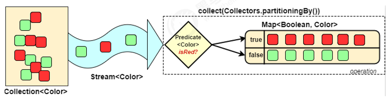 Collectors.partitioningBy会根据值是否为true,把集合分割为两个列表,一个true列表,一个false列表